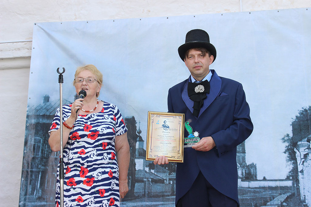 Церемония награждения на этот раз прошла не в помещении Сольвычегодской библиотеки, а в её дворике, где есть сцена с задником-банером, ведь этому благоприятствовала прекрасная летняя погода. Вызывали авторов в порядке возрастания «веса» диплома.